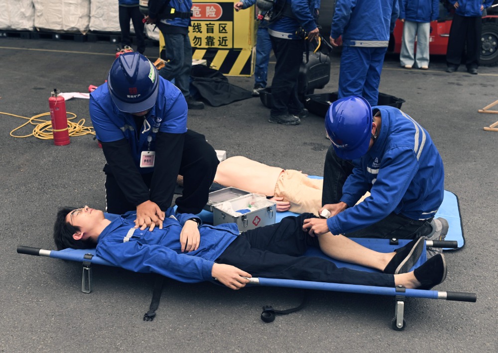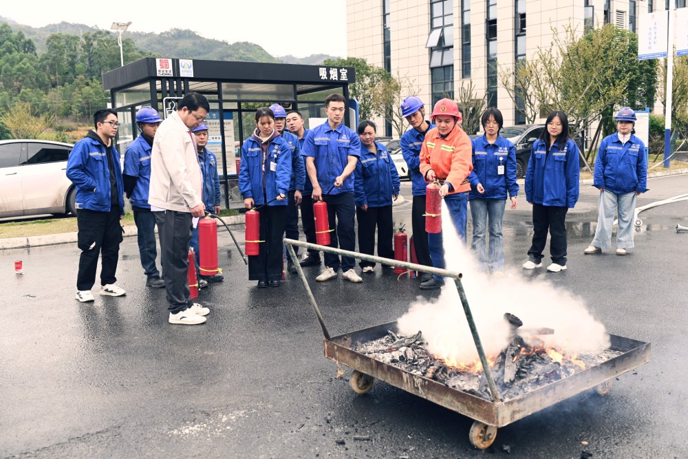 本次演练模拟综合楼因电线短路突发火灾,演练前,磷酸铁锂厂周密部署,统筹物资筹备、人员专项培训及模拟场景布置等各项准备工作,确保演练高效有序。警报响起后,各应急小组迅速响应,立即启动应急预案,组织人员展开灭火行动。演练现场紧张有序、衔接紧密,精准操作消防器材,迅速控制火势蔓延,并有序引导人员沿预定路线安全撤离,整个过程环环相扣、高效协同。演练结束后,随即组织开展了心肺复苏及灭火器使用的专题培训,通过“理论讲解+现场演示+全员实操”的方式,进一步巩固和提升了员工的应急救援实战技能。
